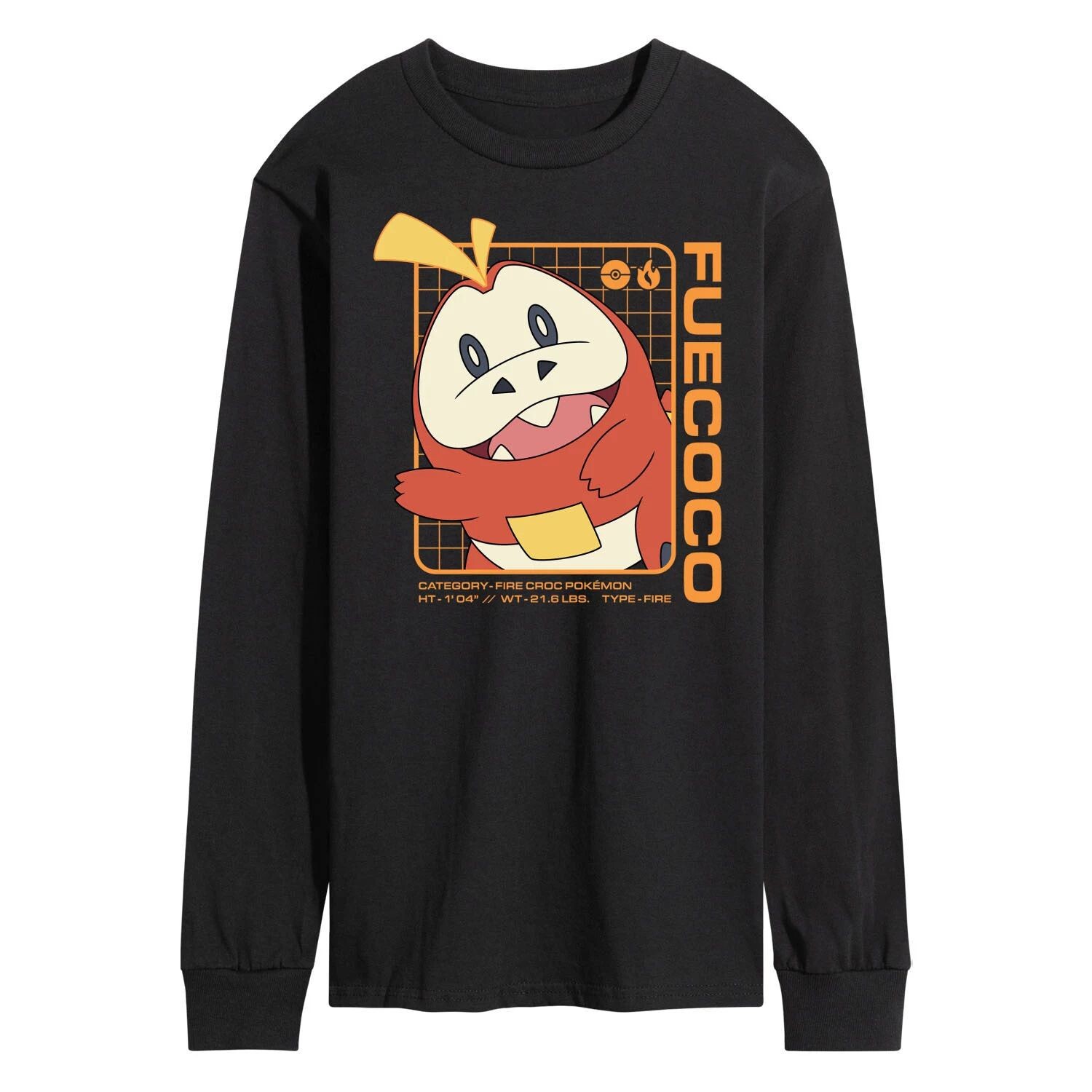 Мужская футболка с длинными рукавами и рисунком Pokemon Fuecoco Stats Licensed Character