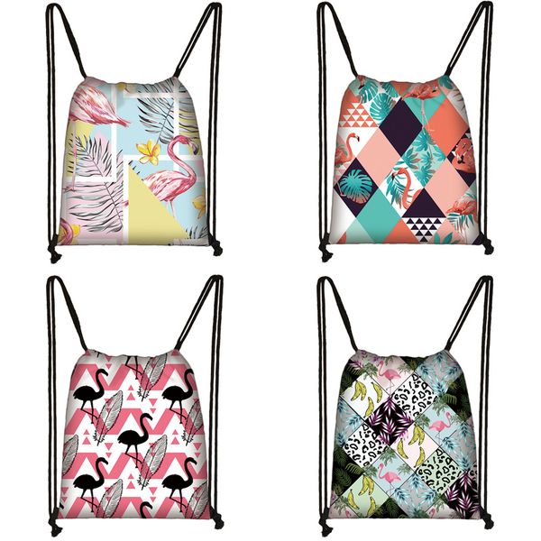 мультфильм фламинго печати drawstring сумка женщины дорожная сумка подросток школа коричневый девушка и мальчик рюкзак мода сумки для хранен