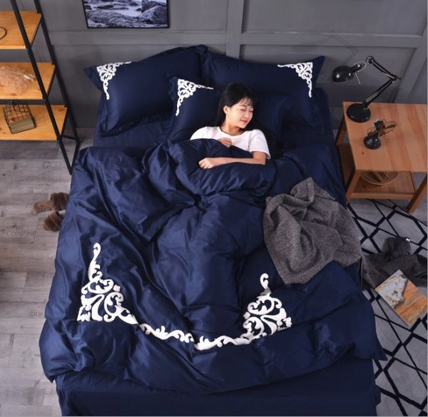 новая мода реактивный вышитый хлопок семья из четырех постельных принадлежностей хлопок постельное белье одеяло набор приспособленные просты