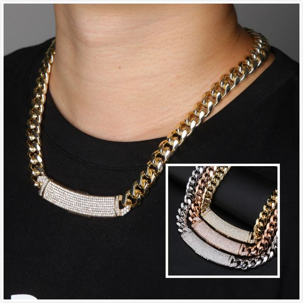 новое поступление 12 мм белое золото покрытием кубического циркония длинная пряжка большой кубинский звено цепи мужские ожерелья 18 мм хип-х, Silver