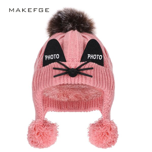 новые дети плюс бархатная вязаная шляпа зимние мальчики и девочки хлопчатобумажная шапка бархат мультфильм кошка уши открытый теплый помпом, Blue;gray