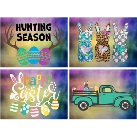 SPXUBZ Easter Placemats Colorful Truck Leopard Bunny Egg Antlers 18x12 Inch Placemats for Family Table Holiday Decoration Placemat Set of 4