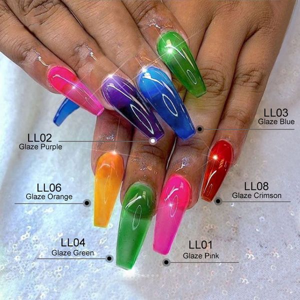 новые популярные радуга янтарный стекла клей прозрачный студень клей лак для ногтей 9 цветов долговечный, не уменьшаясь, Red;pink