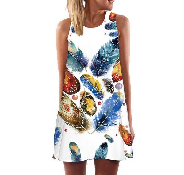 новые творческие женщины летнее платье без рукавов цифровой 3d печати платья выше колена короткие-line повседневные пляжные платья, Black;gray