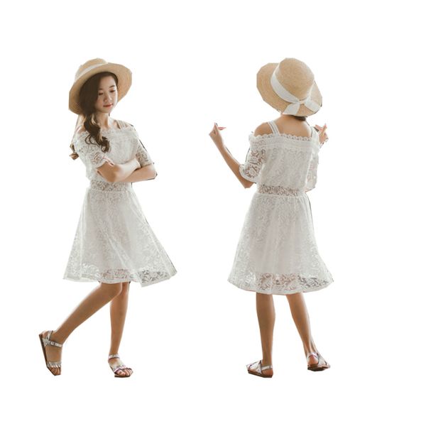 новый подростковый платье хлопок девушки принцесса белья без бретелек плеча кружева дети длинных платьев нового лето sling пляж платья, Red;yellow