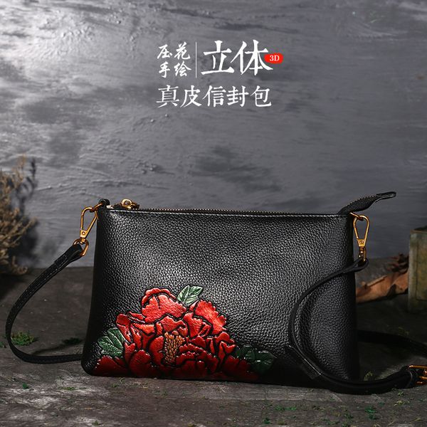 новый стиль женские кожаные сумки полнозернистая кожа женская тисненая ручная роспись клатч многофункциональный кросс-боди маленькая сумка