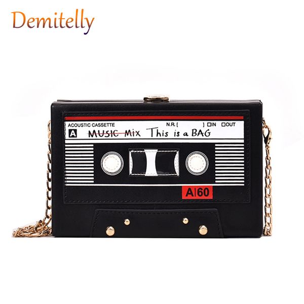 новый стиль персонализированного радио дамы сумки моды печати ленты box плеча мешок цепи женская сумка кошелек