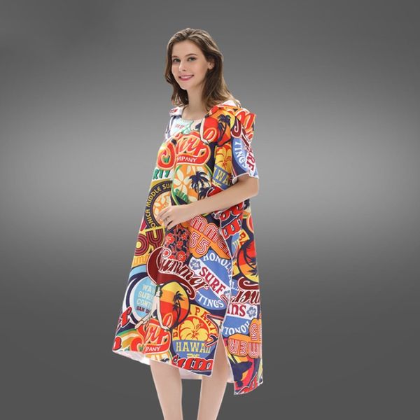 одежды печати изменение robe полотенце мода открытый для взрослых с капюшоном пляжное полотенце пончо женщины халат полотенца пляжные принад