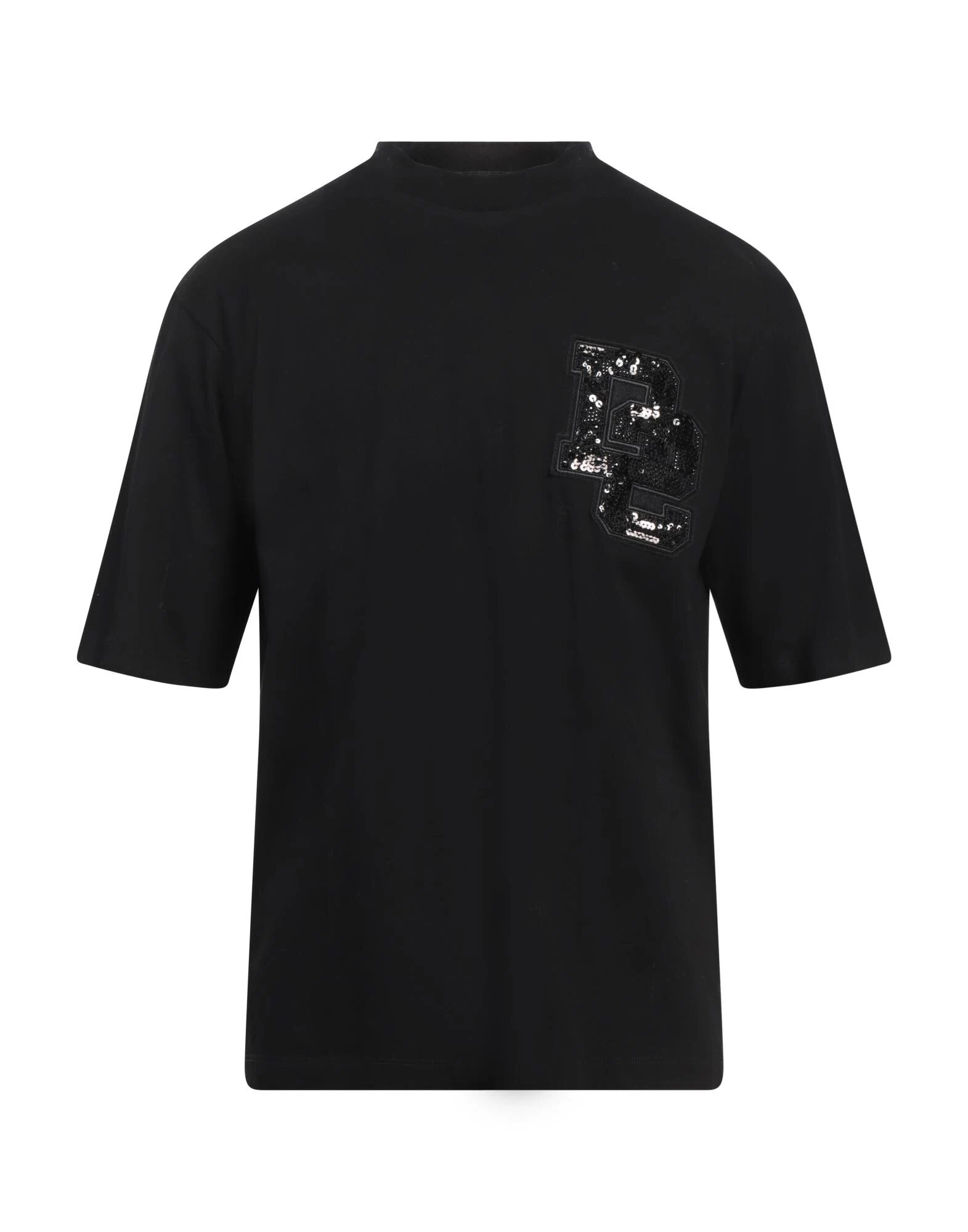 Женская летняя повседневная свободная футболка с карманами и винтажным принтом с круглым вырезом и коротким рукавом XL чёрный