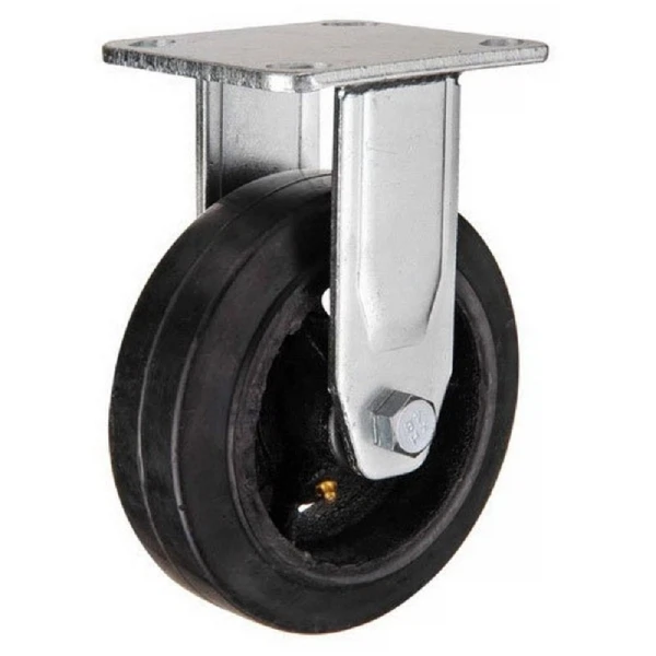 опора колёсная неповоротная, чёрная резина. d-100 мм. (130 кг.), Серый