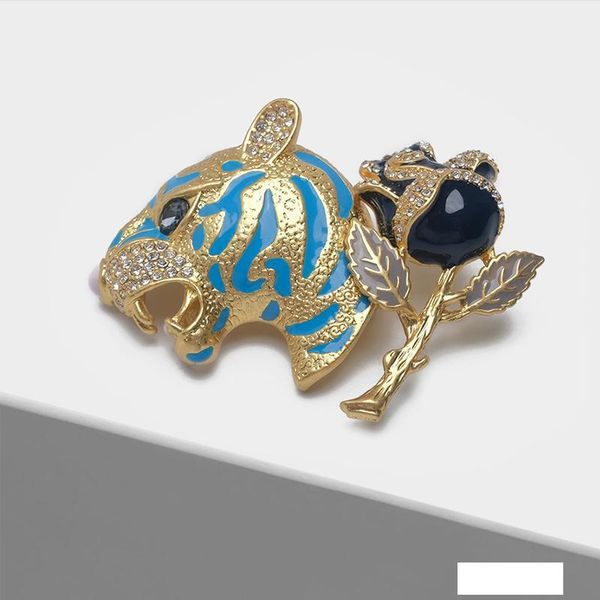 оптовая леопард голова эмаль черная роза моды дизайн брошь, Gray