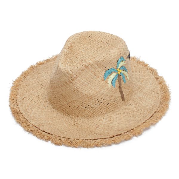 оптовая унисекс вышивка лето натуральная рафия соломенная пляжная шляпа от солнца