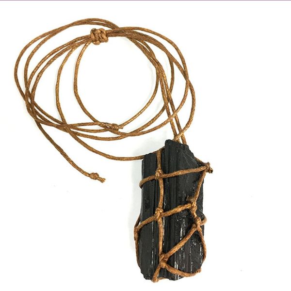 оптовая 10 шт handmade плетение неправильной формы черный вулканический камень кулон rope цепи ожерелье лазурит ювелирные изделия, Silver