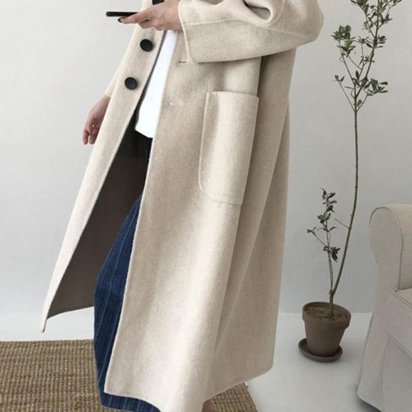 осенью и зима 2020 новый стиль тонкий сквозь колено средняя длина шерстяного пальто осень зима кашемировая шерсть пальто, Black