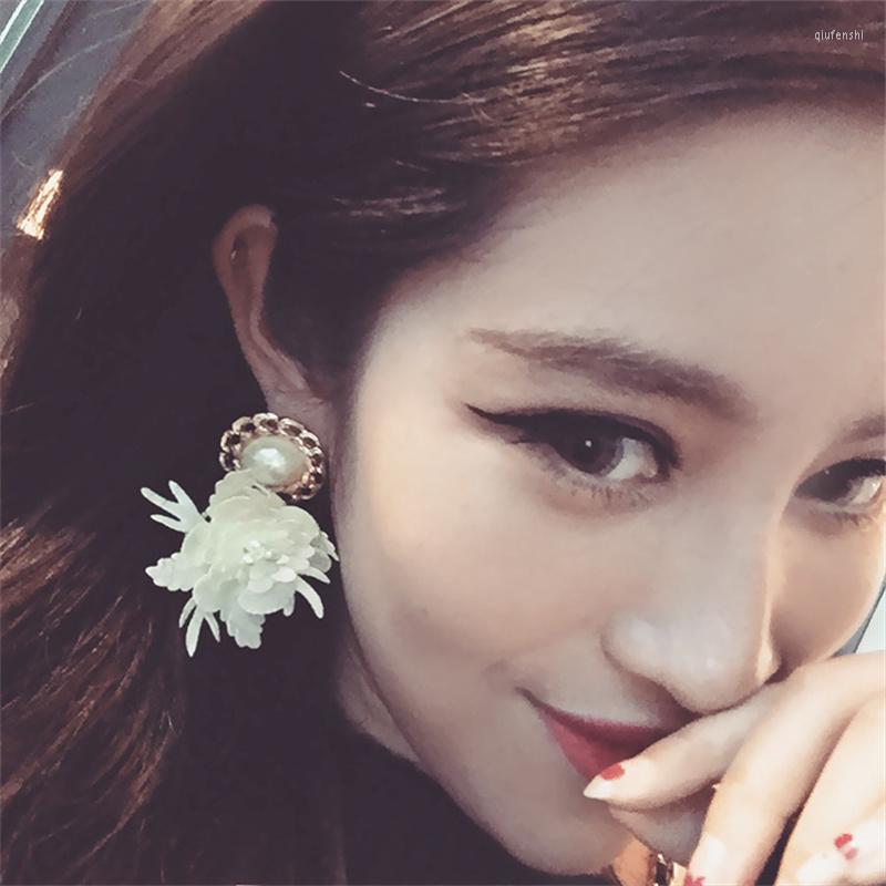 Dangle Earrings Baroque Tassel Pearl Long White Leather Flower Temperament Women