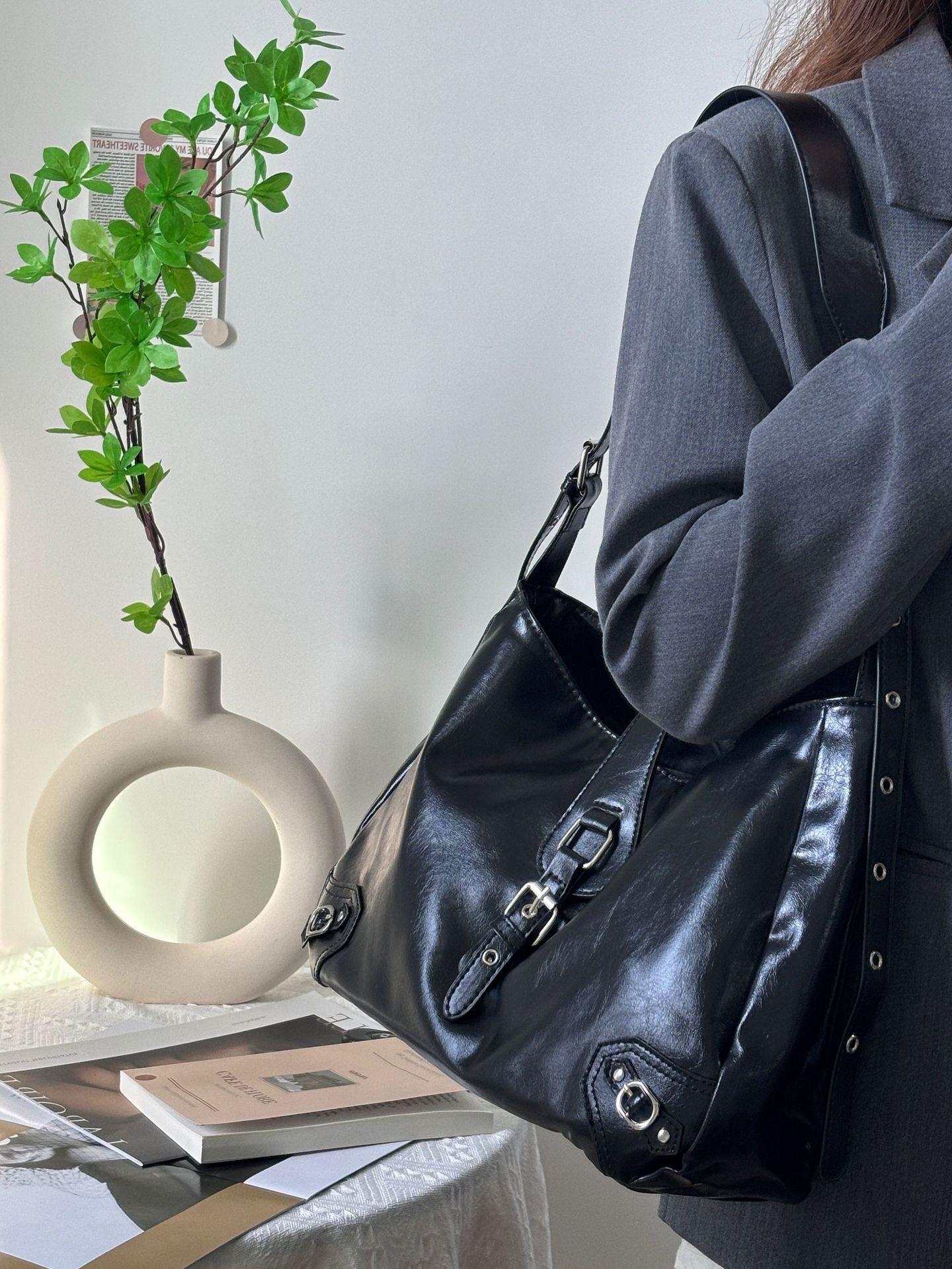 осень-зима 2025 новая модная вместительная сумка для поездок на работу Kusa сумка на плечо подмышку премиум сумка-тоут через плечо чёрный