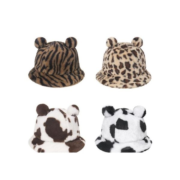 осень и зимний леопардовый мяч мяч мяч плюшевый рыбак шляпа милый мягкий держать теплые сгущает плюс бархатные шляпы sqcjgq home2006, Black;white