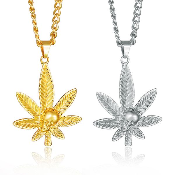 панк мода хип-хоп мужские женщины ожерелье сплава золото серебро листьев головы черепа ожерелье цепи ювелирные изделия подарок, Silver
