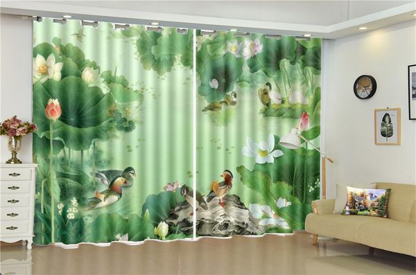 пейзаж занавес продвижение красивая лотос счастливая птица пользовательские гостиная спальня красиво украшенные шторы