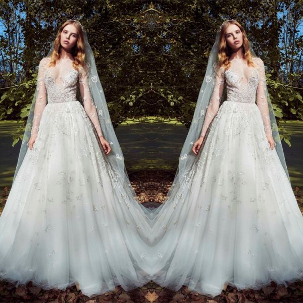 платье берта 2020 свадебные платья шнурок аппликации длинные рукава свадебные платья beads иллюзия сшитое boho bohemian линия свадьба, White