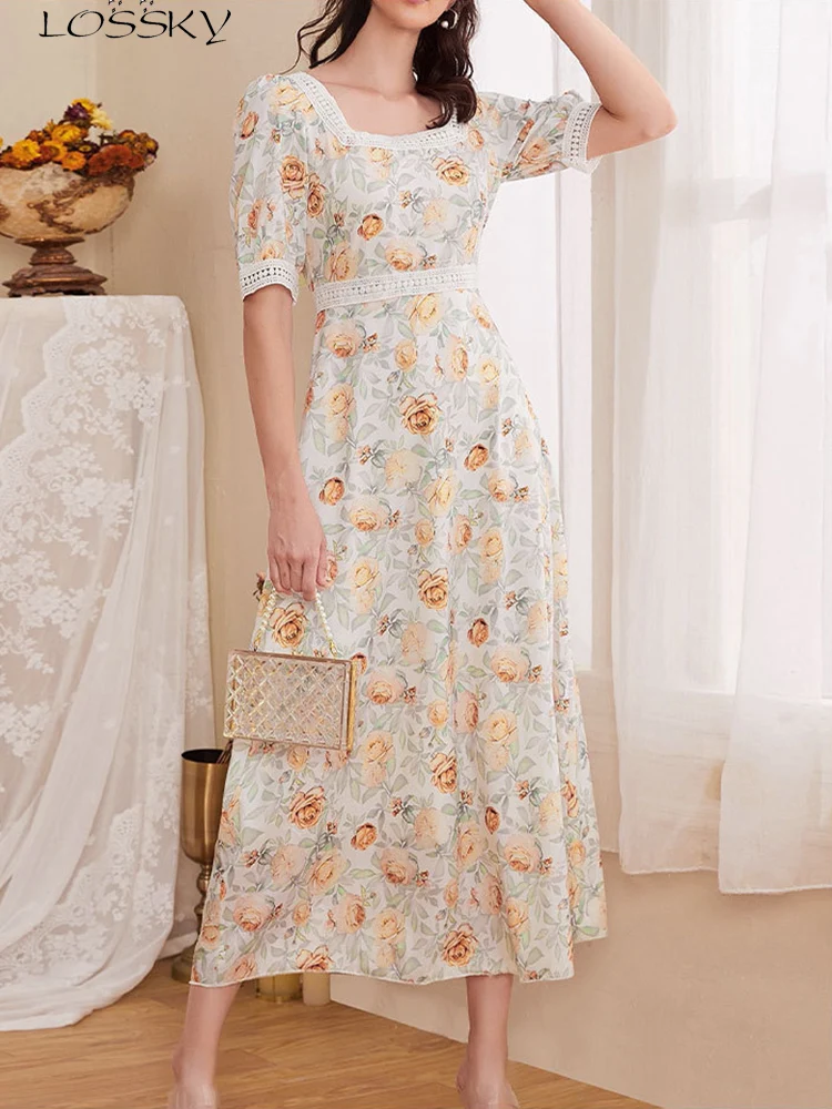 платье длинное в цветочек женское,шифоновое платье женское летнее 2022,кружевное платья женские модные,пляжное платье с пышными рукавами,пов...