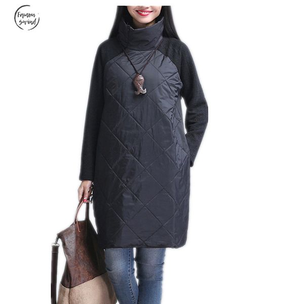 платья с длинным рукавом черного проложенного хлопок плюс размере женщины сыпучей мини осень зима платье vestidos весна одежда партия 2019, Black;gray