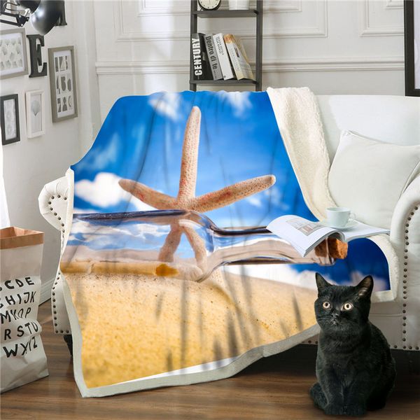 пляжная ракушка плюшевые одеяла 3d печать морская звезда шерпа постельные принадлежности лето двойной толстый бросок одеяло