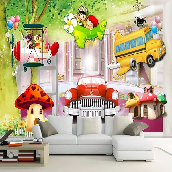 пользовательская большая настенная 3d обои сказочного мультфильм автомобиль самолет ребенок спальня настенной tv задняя стена декор глубоко