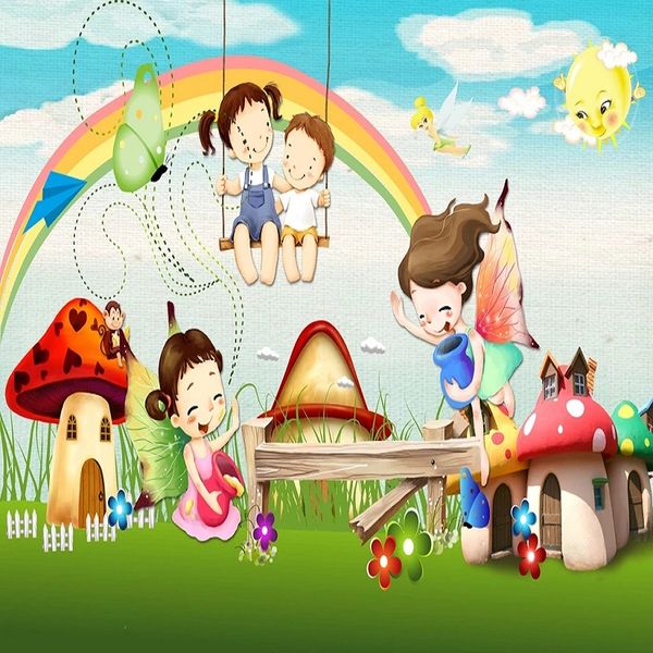 пользовательская большая настенная 3d обои nordic современный мира мультфильм девочка мальчик качели спальня настенной tv задняя стена декор