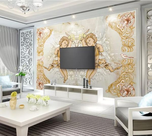 пользовательские 3d фото обои мраморный рисунок европейский ангел стиль настенная картина обои для гостиной украшения спальня