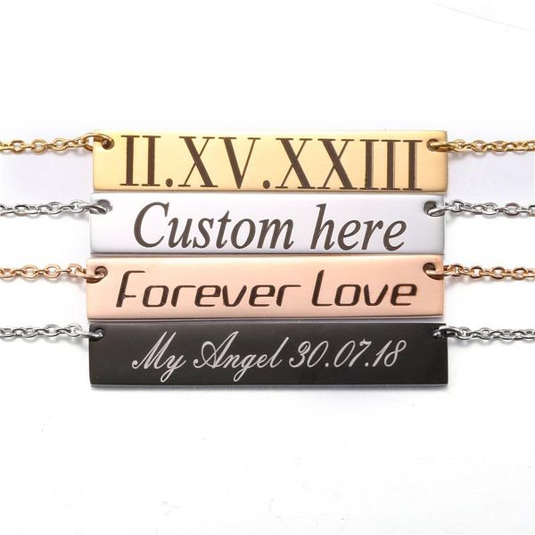 пользовательское имя сталь дата nameplate черный сделано цвет слово письмо золотое ожерелье бар гравировка подарков сеть ювелирных id персон, Black