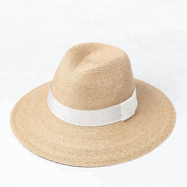 fancy hand weave fine raffia straw braid fedora hat for summer vacation dress