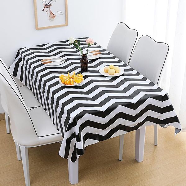 простая черно-белая полосатая скатерть водонепроницаемая маслозащитная густая плотная прямоугольная пыль без мытья столовая крышка jllvuk