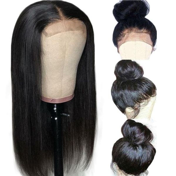 прямые бразильские реми парики фронта шнурка человеческих волос с волосами младенца 180% плотность натуральный цвет 360 парик фронта шнурка, Black