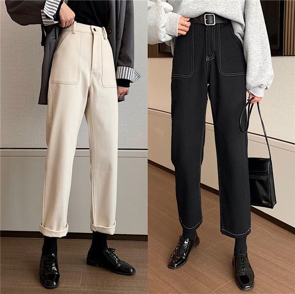 прямые джинсы женщины высокая талия черные белые джинсы винтаж парень мама джинсовые штаны женские 2020 ретро свободные штаны, Blue
