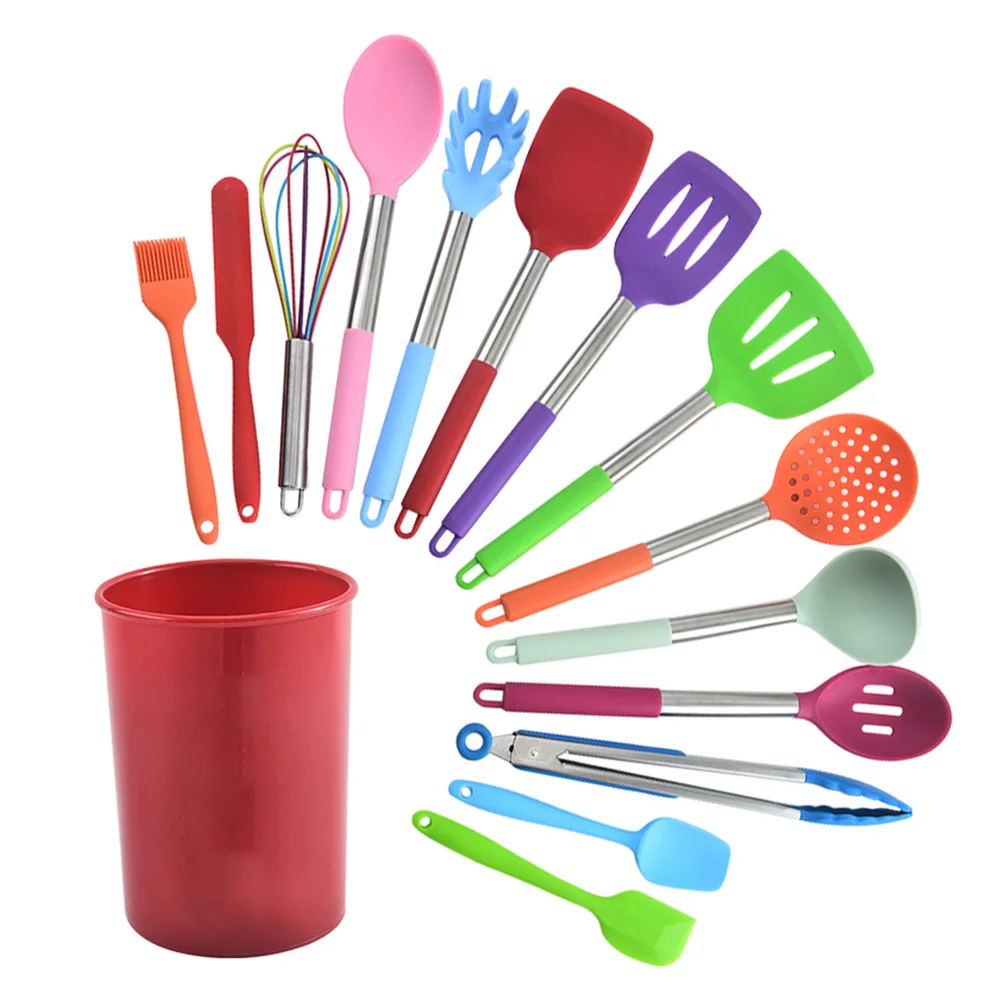 15Pcs Silicone Cooking Tool Kit Stainless Steel Handle Cookware (Assorted Color)