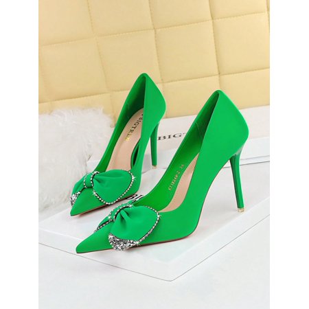 Ladies‘ High Heels With Rhinestone Butterfly Knot Decoration And Stiletto Heel