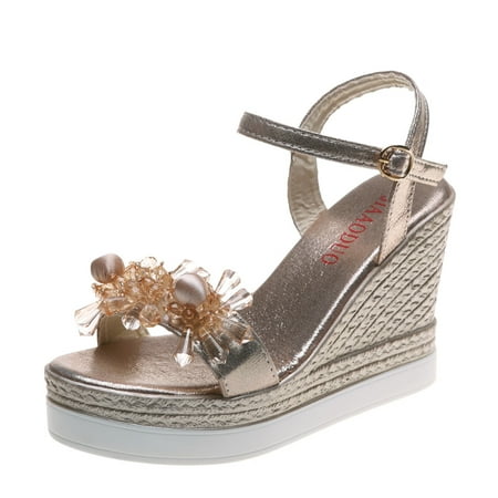 GNEIKDEING Summer Women Sandals Wedge Heel Platform Crystal Buckle Lightweight And Comfortable Gift on Clearance