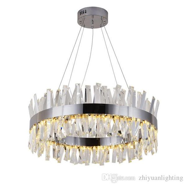 роскошные современные хрустальные люстры, освещающие круглые люстры с хрустальной трубкой золото / хром для столовая гостиная