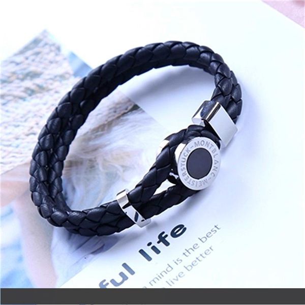 роскошные черные сплетенные кожаные браслеты с mb брендингом французские мужчины мужские ювелирные изделия шарм браслеты как подарок на день, Golden;silver
