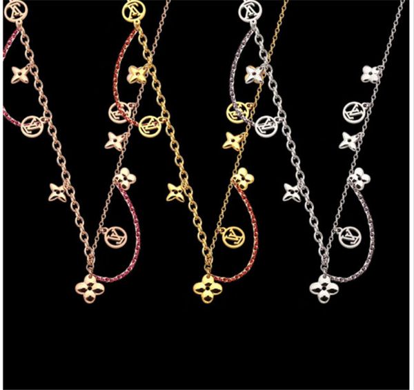 роскошные ювелирные изделия розовое золото четыре листа цветок кулон дизайнер ожерелье 18k золото нержавеющая свитер цепи женщины длинные ож, Black