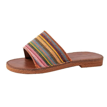 Womens Flat Sandals Fashion Round Open Toe Slip On Slides Slippers for Summer Women s Summer Fashion Color Matching Ethnic Style Flat Bottom Casual Slippers Yellow 7