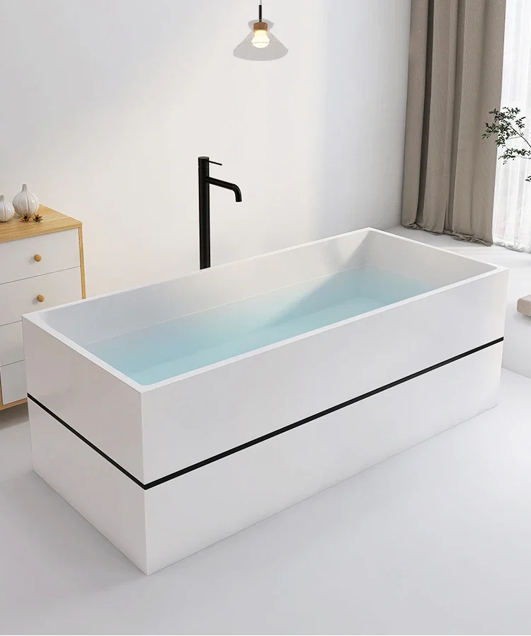 светлая роскошь, акриловая отдельно стоящая черно-белая простая маленькая квартира, квадратная ванна пропила к плече 1-1,7 м.