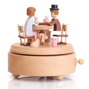 Wooden Music Box Valentine’s Day Gift Birthday Girlfriend Wife Music Box Desktop Wooden Rotating Musical Box Tabletop Ornament