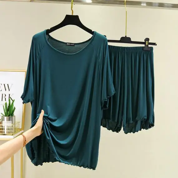 Pajamas for women loose short sleeve shorts sleepwear set stitching color modal cotton pijama home clothes new pyjamas femme