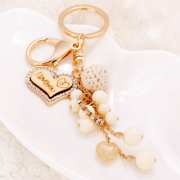 сердце любовь ключевых колец ювелирных изделия rhinestone брелка цепь способ шарик шарик подвесок мешок шарма металл автомобили keyring hold, Slivery;golden