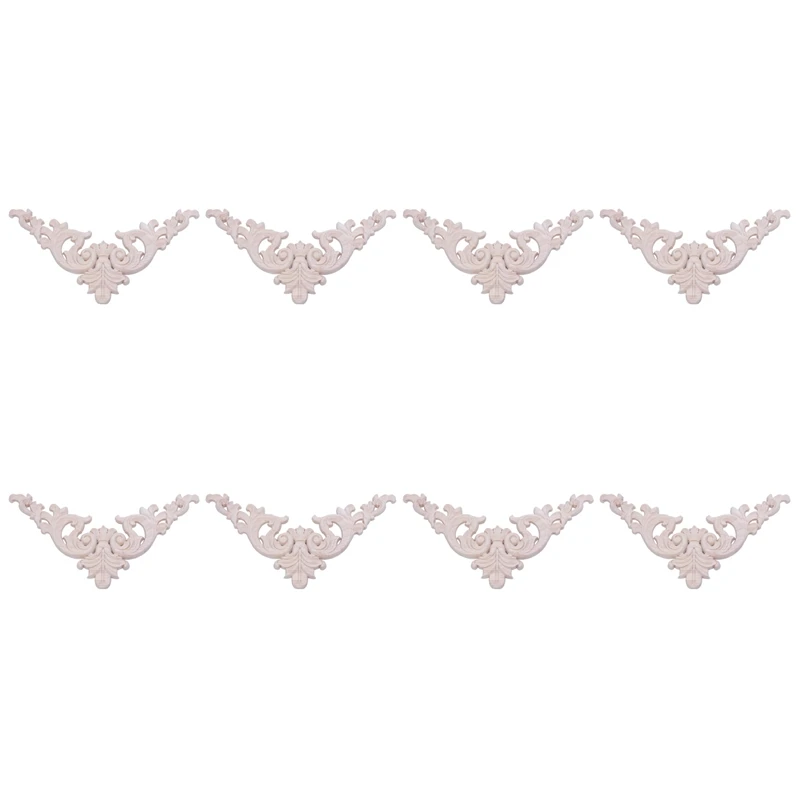8 Pcs 20 X 20Cm Rubber Wood Oak Carved Corner Onlay Applique Cabinet Unpainted