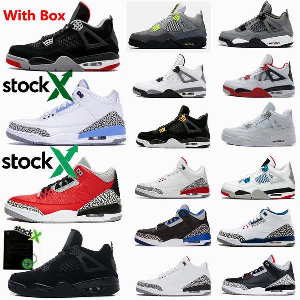 с коробкой 3s в красной цемента чикаго в формате unc мужская баскетбол обувь 4 черная кошка выведена классный серый белый черный цемент на о