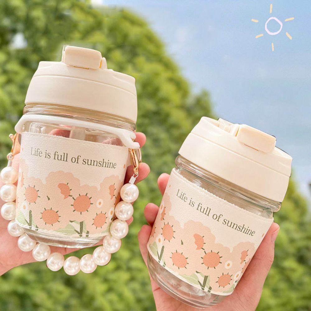 с соломенными чашками для воды, 350 мл, чашки для напитков, кофейные кружки, жемчужная стеклянная чашка, подарок Bestie