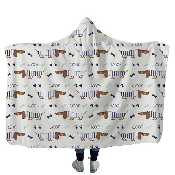 такса 3d печать бросьте hooded blanket носимого теплый флис постельные принадлежности офис одеяла soft взрослые путешествия 03
